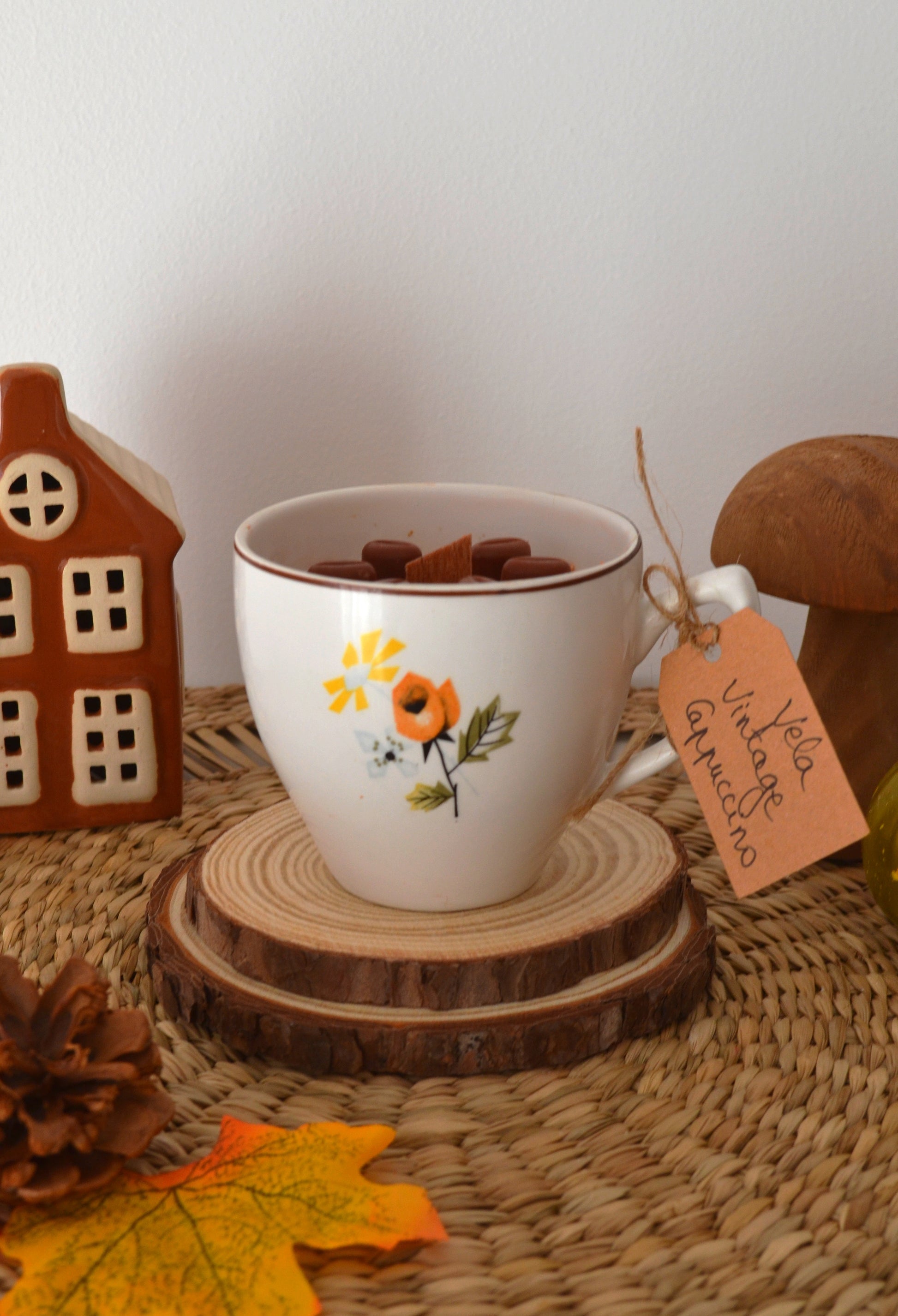 Há aromas que aquecem a alma e objetos que contam histórias. Estas velas nasceram do encontro perfeito entre o aconchego do cappuccino e o charme intemporal de chávenas de porcelana vintage.